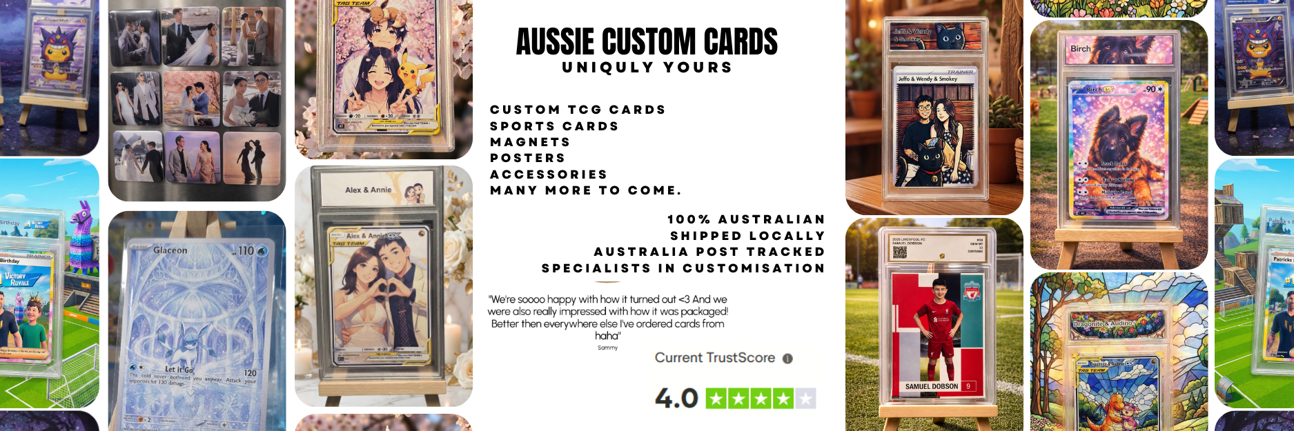 "aussiecustomcards are great! you can see the time and effort they put into their products and how they are a real tcg fans! Couldn't recommend enough <3"